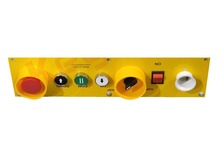علبة او صندوق الصيانة يمكن اعتباره حلقة الوصل بين الكابينة ولوحة الكنترول ويمكن من خلاله التحكم في عملية اجراء الصيانة عن طريق مفاتيح الصيانة المثبته عليه .